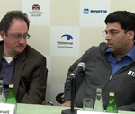 12.05.2012 - Auch die zweite Partie der Schach-WM 2012 in Moskau zwischen Viswanathan Anand und Boris Gelfand endete unentschieden. Der Herausforderer eröffnete 1.d4 und traf nicht unerwartet auf die solide Slawische Verteidigung des Weltmeisters. In der Folge suchte der Israeli nach verwertbaren Vorteilen, doch mehr als ein minimales Plus konnte er aus seinem Gegenüber nicht herauspressen. Und so wundert es nicht, dass nach er nach 25 Zügen die Lust am Weiterspielen verlor und Anand das Remis offerierte, welches dieser sofort annahm. Damit steht es nach zwei WM-Partien 1:1. Morgen haben die Spieler ihren ersten Ruhetag, bevor Anand am Montag seine zweite Weißpartie eröffnen wird. Partien, Matchstand & Bilder... Mate in Moscow Offizielle WM-Seite