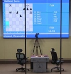12.05.2012 - Die 1.Runde endete mit einem Remis nach 24 Zügen ohne besondere Vorkommnisse, mal abgesehen, dass Gelfand zum ersten Mal auf dem obersten Turnierparkett Grünfeld-Indisch spielte. In der 2.Partie ist nun Vishy Anand gefragt, mit welcher schwarzen Taktik er aufwartet. Hauptverteidigung oder Ablenkungsmanöver? Wie versprochen, können Sie heute in vielen Bildern, den historischen Abriss der Schachgeschichte, beziehungsweise der Weltmeisterschaftskämpfe und deren Protagonisten kommentarlos ansehen, aber Sie werden alles leicht verstehen, Bilder sagen mehr als russische Worte. Zusätzlich zeigen wir ein paar besondere Bilder während der 1.Partie. mehr 1.Runde & Schachhistorische Zeitzeugen "Die Zeit" Ulrich Stock Mate in Moscow Offizielle WM-Seite