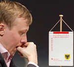 30.07.2011 - In der neunten Runde des Sparkassen Chess-Meeting ließ Vladimir Kramnik nichts mehr anbrennen. Um seinen zehnten Titel in Dortmund zu sichern, benötigte der 14. Weltmeister lediglich ein Remis gegen Anish Giri und dieser dachte gar nicht daran, den Spielverderber zu mimen. Als ihm Kramnik die Möglichkeit bot, eine dreimalige Stellungswiederholung zu erzwingen, ließ sich der junge Niederländer nicht lange bitten und machte seinen Gegner so zum mehr als verdienten Turniersieger. Zumindest ein kleines Lächeln dürfte auch Hikaru Nakamura heute über das Gesicht gehuscht sein, denn er konnte Georg Meier besiegen. Obwohl der Deutsche erneut eine gute Partie spielte, sein immenser Zeitverbrauch brach ihm letztlich und ebenfalls erneut das Genick. Weitaus friedlicher gestaltete sich das Duell zwischen Ruslan Ponomariov und Liem Quang Le. Beide mühten sich zwar 49 Züge lang redlich, aber der Gegner wollte einfach nicht patzen und so musste der Punkt geteilt werden. Somit hat der Vietnamese weiterhin den zweiten Platz inner, aber noch können ihn Giri (im direkten Duell) und Ponomariov (gegen Meier) abfangen. Die letzte Runde beginnt morgen übrigens schon um 13 Uhr - die "Live"-Übertragung entsprechend um 13:15 Uhr. Am Ende dieses Berichtes finden Sie noch ein Video aus der Schmiede der DeepChess!!!-Crew mit Anish Giri, Georg Meier und Klaus Bischoff im Interview. Tabelle, Partien & Bilder... Offizielle Turnierseite
