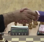18.09.2011 - Die dritte Partie im Finale des World Cups brachte keine Vorentscheidung, aber nach dem erneuten Remis bleibt die Erkenntnis, dass Alexander Grischuk sowohl wörtlich als auch bildlich die Zeit weg läuft. Erstens muss er morgen unbedingt mit Schwarz gegen Peter Svidler gewinnen und zweitens besser mit seiner Bedenkzeit umgehen als zuletzt! Auch heute geriet Grischuk schon aus der Eröffnung in schreckliche Zeitnot und lebte spätestens ab dem 25. Zug nur noch von den 30 Sekunden Bonus pro Zug. Im Bronzeduell trennten sich Vassily Ivanchuk und Ruslan Ponomariov nach spannendem Verlauf ebenfalls unentschieden. Dabei kam Letzterer dem Ausgleich ziemlich nahe, aber Ivanchuk konnte letztlich das Endspiel mit Minusbauer in den Remishafen schleppen. Somit fällt in beiden Duellen die Entscheidung in der 4. Partie oder eben erst am Dienstag im Tiebreak. Alle bisherigen Ergebnisse, Partien & Bilder.. Offizielle Veranstaltungsseite