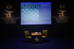 04.06.2009 - Im Schnellschach-Match zwischen dem amtierenden Weltmeister Viswanthan Anand und Ungarns Nr. 1, Peter Leko, in Miskolc steht es zur Halbzeit 2,5 : 1,5 für den Inder. Beide Partien des heutigen Tages endeten friedlich, wobei sich besonders Leko einen Gefallen tat, indem er zumindest temporär auf seinen gestern weltmeisterlich zerlegten Grünfelder verzichtete. Anand dagegen blieb seiner Eröffnungswahl treu und fuhr wiederum gut damit. Unter dem Strich steht heute ein recht kurzes Remis in Partie 1 und ein weiteres jedoch völlig ausgekämpftes in Partie 2. Hier geht's weiter ... Offizielle Matchseite