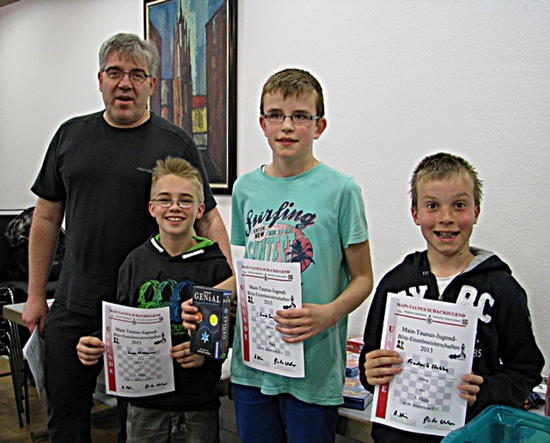 Auf den Medaillenränge: Jan Arnold (Frankfurt-West 8,5/14 Bronce) Aaron Arnold (11,0/14 Silber) Leo Max Deppe (SC Bad Soden 13,0/14 Gold)
