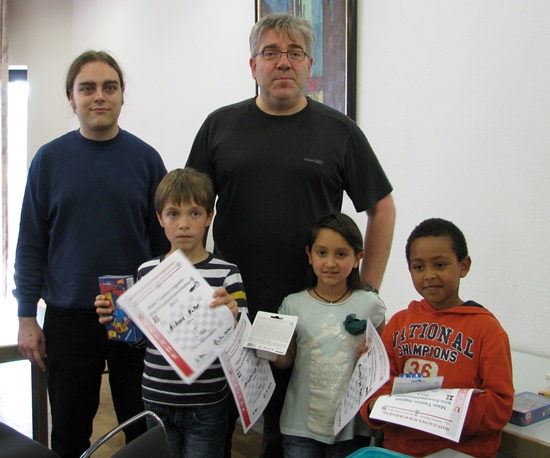 Andreas Haller (U8 Bronce) / Lukas Martin (U10 Gold) / Leo Max Deppe (U14 Gold) / Frederik Stobbe (U12 Bronce) - letztes Jahr im November 2012 war die Ausbeute noch mit 2./3./3./4.Platz noch etwas dürftig, im Blitzen sieht das mit 1./1./3./3.Platz schon ein bisschen besser aus - weiter so!!