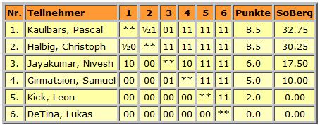 Endlich war es so weit, zum ersten Mal durften vier Neulinge aus der Chess Tigers Talentförderung für den SC Bad Soden an der Blitz-Jugend-Bezirksmeisterschaft der Main-Taunus-Schachvereinigung teilnehmen. Die zehn Jungs aus der Trainingsgruppe GS2, GS4 und den Schach AGs der Geschwister-Scholl-Schule in Schwalbach am Taunus waren von der U8 (unter 8 Jahre) über die U10, die U12 und die U14 verteilt. Hier hatte es der Trainer leicht, denn die Jahrgangsdaten entschieden und so wurde auch ohne Ausnahme zugeordnet. Die Fachleute glaubten sogar, dass die U12 die nominell stärkeren Teilnehmer hatte als die U14 - Leo Max Deppe vom SC Bad Soden musste da schon ordentlich Leistung bringen, damit er auch seine Anerkennung fand trotz eines hohen Scors von 13 Punkten aus 14 Partien. Gleichermaßen musste auch der neue U10-Meister Lukas Martin alle seine Kräfte und Konzentration aufbringen, um mit 12/12 Punkten den starken Josef Gertel 11/12 vom SC Frankfurt-West niederzuhalten. Aber was sollte er machen, mehr als 100% geht nicht, auch wenn einige Kollegen mit ihren gutspielenden Schützlingen trotz dieser gigantischen Scors haderten. Im Übrigen ist der Schreiber dieser Zeilen sehr zu frieden mit den Leistungen seiner Schützlinge aus Bad Soden und seines Stammvereins SC Frankfurt-West, die von Markus Busche betreut werden. Weiter so Jungs, Wettbewerb belebt das Geschäft, aber auch die Kinder des SV Griesheim lieferten Großartiges ab - Glückwunsch an die aktiven Michael Schimmer und Ralph Bluhm, die die Kinder so gut fördern. Griesheim und West hatten im Bereich Ü14 überall die Nase vorn, wobei auch beide Vereine über gute Mädchen im U14-Bereich verfügen. Natürlich gilt der Dank allen Vereinen, die die jungen Nachwuchsspieler - unsere Rentenversicherung - aufopferungsvoll fördern und begleiten.