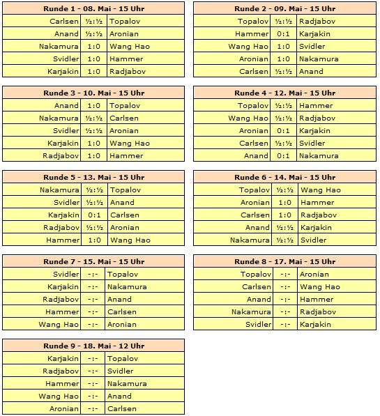TopTurniere Norway Chess 2013 - Carlsen und Aronian holen auf Karjakin entwischt dem Weltmeister
