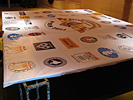 Das Pressezentrum Die Aufsteller werden nachher überall zum Spielsaal in der Hotellobby verteilt