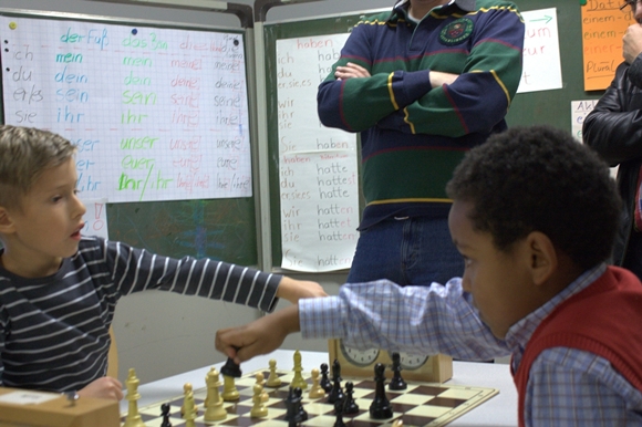 Zusammen mit Roland Bettenbühl hieß es, die auf drei Räume verteilten Turniere im Blick zu behalten, wobei ich selbst von den anwesenden Kindern ausschließlich U8er trainiere und daher - bis auf kurze Stippvisiten bei der U12 und U10 - bei den Jüngsten blieb. Dass sowohl Jan-Frederik Werndl als auch Alexander Beruda in ihren Altersklassen einen ausgezeichneten vierten Platz erreichten, sehen wir Chess Tigers Trainer als Beleg dafür, dass wir unsere Kinder richtig erziehen. Wir können uns darauf verlassen, dass sich unsere Schüler am Brett zu jeder Zeit tadellos verhalten und in dem für sie nötigen Rahmen absolut regelfest sind! Nein, die anderen Kinder sind keine Rüpel - ganz besonders nicht in der U12 und U10, aber bei dem schachlich durchaus beachtlichen Niveau bei den U8ern wünscht man sich ab und an, die Lehrer würden weniger auf Tricks wie Schäfermatt pochen und von der ersten Unterrichtseinheit an mindestens so viel Wert auf das Benehmen am Brett legen. Zum Thema Schäfermatt weiter unten mehr.