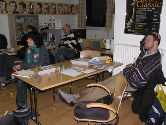 Der Däne Lane Hakan kommt extra nach Frankfurt am Main, um dem Hamburger Endspielexperten Dr. Karsten Müller zu lauschen, dabei zog es ihm sogar die Schuhe aus!