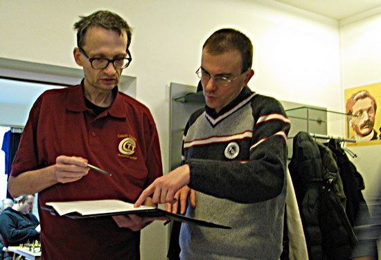 A-Trainer unter sich! IM Stefan Reschke und GM Michael Prusikin Der hessische Jugend-Kader-Trainer Stefan Reschke wollte in diesem Seminar überprüfen, wie er seine nun seit über einem Jahr "Auszeit" krankheitsbedingt selbst einzuschätzen hat - eine lobenswerte und eigenverantwortliche Aktion - Respekt hierfür!