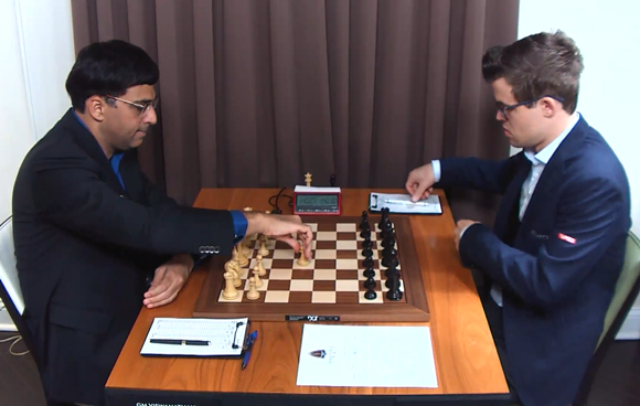 Viswanathan Anand unterlief gegen Magnus Carlsen ein ärgerlicher Überseher, der glücklicherweise bei genauem Spiel des Inders dennoch zum Remis reichte