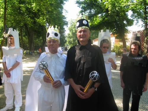 Liebe Leser, da Sie alle technischen Informationen auf der Internetseite des Veranstalters Deutscher Schachbund, Parkhotel Bad Homburg, SK Bad Homburg und Quens-Chess ausführlich nachlesen und typische Schachbilder in Hülle und Fülle bestaunen, bzw. alle Partien, oft schon kommentiert in umfangreicher Form genießen können, möchte ich mich auf dem Spaziergang bei 37 Grad im Schatten durch den herrlichen Kurpark mit seinen modernen Skulpturen und beeindruckender Natur - zur Siegerehrung und Lebendschach - auf Bilder beschränken. Auf dem Weg zurück zum Parkhotel gelangen dann auch noch ein paar Schnappschuesse von starken Frauen in Weiß und Schwarz, wobei nicht nur das Schach im Mittelpunkt stand, sondern wieder einmal die anregende Kunst zu Handlungen am starken Geschlecht führte.