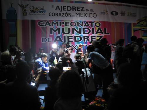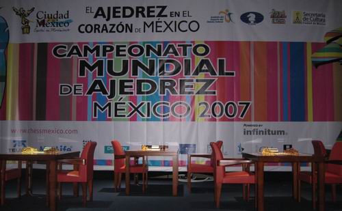 Nachfolgend ein paar Bilder (Appetithappen) einer großartigen Schach-Weltmeisterschaft in Mexiko-Stadt, verbunden mit der Hoffnung, dass Anand und Kramnik, die Herren Organisatoren Jorge Saggiante und Paul German unsere Einladung annehmen werden vom 21.Juli bis 28.Juli 2008 nach Mainz am Rhein zu kommen. Die Einen, um Hochleistungsschach in Viererturnieren zu zeigen und die Anderen, um es zu erleben und zu geniessen. Herzlich Willkommen!