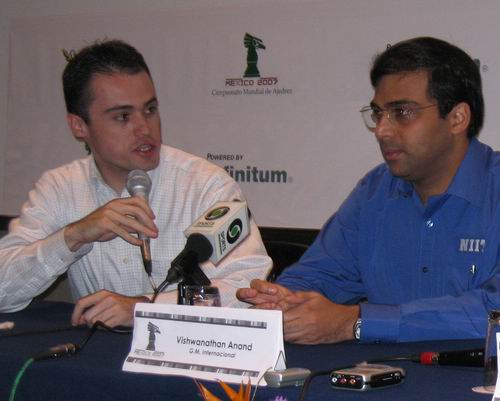 03.10.2007 - "Eye of the Tiger" - Holzauge sei wachsam, als ordentliches stimmberechtigtes FIDE-Vorstand - Mitglied Viswanathan Anand, Weltmeister! 25 Millionen plus/minus 3 Millionen leben in einer leidenschaftlich - nicht all zu schnellen - Metropole mit viel Kultur und Tradition. Ein würdiger Austragungsort mit einem hervorragendem Sheraton Centro Histórico mit angeschlossenem Convention Center. Eine Schachweltmeisterschaft mit Charakter und Flair, schachlich hochinteressant mit Kampfgeist, würdigem und gerechtem Sieger, dem die Weltanerkennung durch den souveränen Sieg gegen viele gleichstarke Gegner aus fünf Nationen gegönnt und von den echten Schachfreunden frenetisch bekundet wird. Ein wahrlich grandioses Festival für die Herzen und Sinne der Schachwelt. Warum jetzt wieder die feindlichen, polarisierenden, durch dauernde Mäzchen und Unfairness geprägte Zweikämpfe wieder einführen? Wäre nicht eine Schach-Weltmeisterschaft der acht jeweils besten Spieler der Welt - die sieben besten der Weltrangliste - "Durchschnitt Liste 2 Jahre" spielen mit dem Weltmeister die Stufe der letzten "Acht" - keine unangemessene Macht mehr des amtierenden Weltmeisters und keine Revanche-Kämpfe der machtpolitisch Priviligierten.