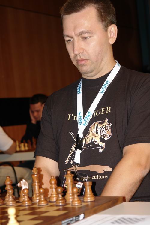 Zum ersten Mal bei der Chess Classic 2007 im Tiger-Shirt USA-Bürger Gata Kamsky mit viel Spaß, sehr ernst dreinschauend, bei der Sache