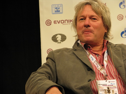 28.10.2008 - "Das Ergebnis war doch bislang viel zu krass. Das sah ja nach Außen so aus, als herrsche hier ein Klassenunterschied zwischen den Beiden. Ich habe Kramnik jedenfalls kräftig die Daumen gedrückt", wird der Sohn von Alt-Bundespräsident Richard Freiherr von Weizsäcker im Bonner Generalanzeiger zitiert und lässt auf dem Weg zum Frühstück im Hilton Bonn seiner Begeisterung freien Lauf, in dem er euphorisch bekundet: "Das war die bisher beste Partie des WM-Matches". Und der Präsident des Deutschen Schachbundes und Co-Präsident des Organisationskommitees der Schach-Weltmeisterschaft in Bonn, weiß genau wovon er redet. Ist er doch selbst Großmeister im Fernschach und unlängst mit dem deutschen Team Olympiasieger geworden. Bei dieser Disziplin ist die schachliche Vorbereitung der parallel ablaufenden Partien mit leistungsstarken Computerprogrammen von allerhöchster Bedeutung. Partien, bei denen eher menschliche Schwächen offen zu Tage treten, auf der einer oder anderen oder gar auf beiden Seiten, werden von ihm, wie von vielen anderen Puritanern, offensichtlich eher gering geschätzt, zum Beispiel die Schwarzsiege Anands in der 3. und 5.Partie.