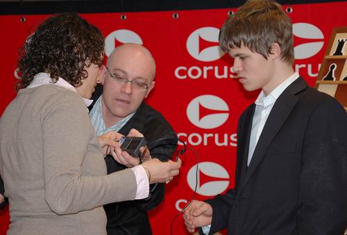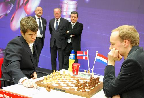 01.02.2009 - In der letzten Runde wurde hart gekämpft. Vom sechsköpfigen Führungsfeld konnte im direkten Duell nur der Ukrainer Sergey Karyakin mit Schwarz spielend den Kubaner Leinier Dominguez in 41.Zügen schlagen. Im Najdorf-System der Sizilianischen Partie verlor Weiß im 29.Zug mit Lxg7 anstatt Lxg6 den Faden und wurde Opfer seiner wilden Angriffsstrategie. Nachdem Teimour Radjabov gegen Daniel Stellwagen schon die etwas schlechtere Stellung erreicht hatte, kam es zum Remisschluss, genauso wie in der Partie Jan Smeets gegen den Vorjahresgewinner Levon Aronian. Nach der Zeitkontrolle mit dem 47.Zug wurde auch die Schevininger Variante des Sizilianers zwischen Gata Kamsky und Sergei Movsesian remis gegeben. Nur der Norweger Magnus Carlsen versuchte noch seine "Ungewinnbare" Partie gegen Wang Yue zu gewinnen, aber am Schluss musste er sogar dem Chinesen den Sieg überlassen - es geht halt nicht mit Gewalt.