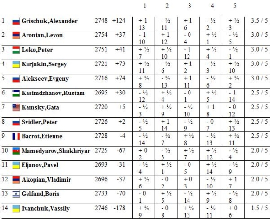 TopTurniere FIDE Grand Prix, Nalchik - Kasimdzhanov und Akopian siegen Grischuk nach wie vor führend