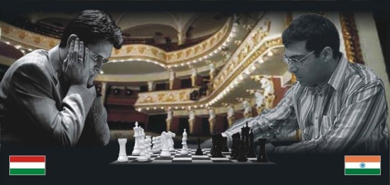 04.06.2009 - Im Schnellschach-Match zwischen dem amtierenden Weltmeister Viswanthan Anand und Ungarns Nr. 1, Peter Leko, in Miskolc steht es zur Halbzeit 2,5 : 1,5 für den Inder. Beide Partien des heutigen Tages endeten friedlich, wobei sich besonders Leko einen Gefallen tat, indem er zumindest temporär auf seinen gestern weltmeisterlich zerlegten Grünfelder verzichtete. Anand dagegen blieb seiner Eröffnungswahl treu und fuhr wiederum gut damit. Unter dem Strich steht heute ein recht kurzes Remis in Partie 1 und ein weiteres jedoch völlig ausgekämpftes in Partie 2.