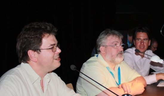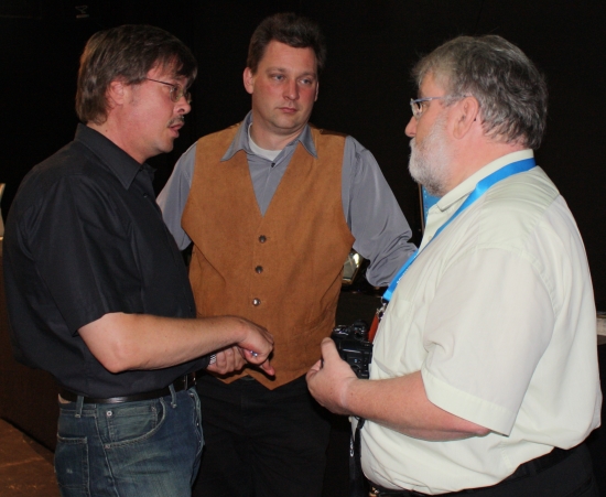 Das Kommetatoren-Duo, welches wir auch bei der Chess Classic Mainz sehen bzw. hören werden, bestand darauf, dass Hans-Walter Schmitt auf einen Abstecher hinter die Bühne kam und ein paar Fragen beantwortete