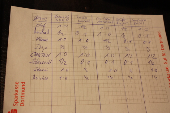 Der Tippzettel der 5. Runde im Pressezentrum beweist es: Keiner der Experten hat richtig getippt!