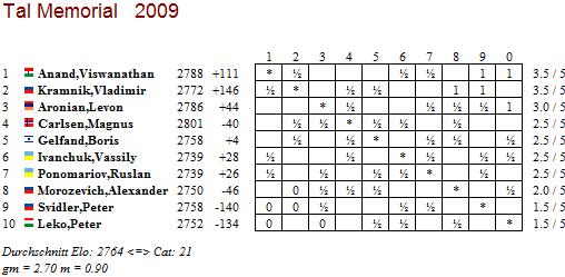 TopTurniere Tal Memorial 2009 - Vishy Anand siegt als Einziger ... ... und führt zur Halbzeit gemeinsam mit Vladimir Kramnik