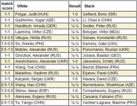 Shakhriyar Mamedyarov hat morgen frei, denn er schlug Wang Hao mit 1,5:0,5
