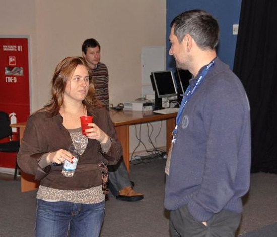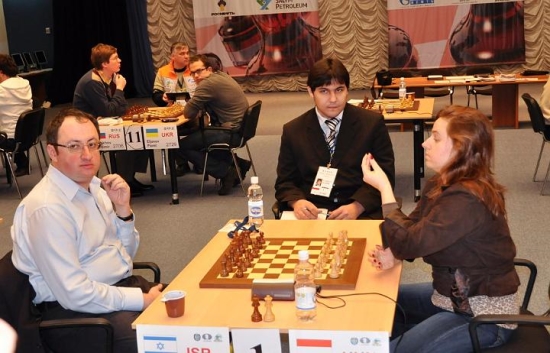 Während Judit Polgar die Pausen mit dem einen oder anderen Plausch verbrachte - hier mit Viktor Bologan ...