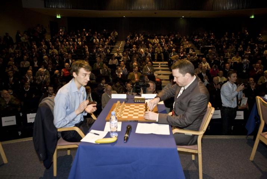 08.12.2009 - Die erste Runde der London Chess Classic 2009 konnte mit dem Duell Magnus Carlsen gegen Vladimir Kramnik gleich gigantische Aufmerksamkeit auf sich ziehen und die norwegische Nummer 1 der Weltrangliste legte einen Traumstart hin. Erst luchste er Vladimir Kramnik einen Bauer ab und als er den letzten, verzweifelten Versuch des Russen, mit taktischen Mitteln doch noch Verwirrung zu stiften, lässig abgewehrt hatte, brauchte er nur noch auf die zum Zeichen der Aufgabe gereichten Hand des mächtigen Gegners warten. Dies erfolgte nach Carlsens 43. Zug, der jegliche Chancen auf einen "lucky punch" zunichte machte. Den zweiten Sieg des Tages konnte nach 163 Zügen Luke McShane gegen Nigel Short landen. Die beiden anderen Partien endeten gerecht remis.