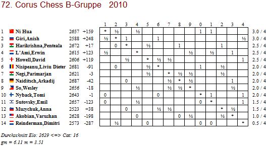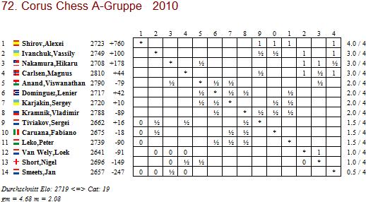 TopTurniere Corus Chess 2010 - Shirov nicht zu stoppen? Carlsen, Ivanchuk und Nakamura bereits einen Zähler zurück