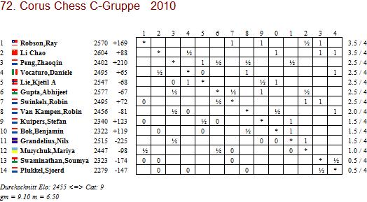 19.01.2010 - Eigentlich ist es nach vier von dreizehn Runden verfrüht, einen Spieler zum Top-Favoriten auf den Gesamtsieg zu bezeichnen, wenn dieser Spieler allerdings mit 4/4 durchs Feld pflügt, dann kommen unwillkürlich Erinnerungen an alte Zeiten auf, als Garry Kasparov noch mit von der Partie war. Nein, es ist mal nicht Magnus Carlsen, der das Geschehen in der A-Gruppe des Corus Chess 2010 in Wijk aan Zee dominiert, es ist Alexei Shirov. Der gebürtige Lette präsentiert sich heuer in bestechender Form, was jüngst Jan Smeets zu spüren bekam. Der Niederländer war ohne Chance und verhalf Shirov unfreiwillig zu einer aktuellen Performance von 3483. Da können selbst seine bisherigen Verfolger Carlsen und Nakamura nicht mehr folgen. Beide kamen heute nicht über ein Remis hinaus, wobei der Norweger gegen Nigel Short gute Chancen ausließ, während der Amerikaner gegen Weltmeister Viswanathan Anand mit dem halben Punkt sicherlich zufrieden war. Eingereiht in die Riege der Verfolger hat sich Vassily Ivanchuk. Der Ukrainer, der vor Kurzem noch die Brocken hinwerfen wollte, überspielte einen viel zu riskant agierenden Loek van Wely und wird vielleicht jetzt schon wieder anders über seine Rücktritts-Ankündigung denken. Bereits zwei Punkte Rückstand auf Shirov haben unter anderem die bisher sieglosen Vishy Anand und Vladimir Kramnik. In der B-Gruppe führen weiterhin Anish Giri und Ni Hua. Sie spielten heute gegeneinander und gaben mit ihrem Remis der Konkurrenz die Chance, den Abstand zu verkürzen. Leider konnte Arkadij Naiditsch die Gelegenheit nicht nutzen und verlor gegen Pentala Harikrishna, welcher sich nun ebenso wie Erwin L'Ami in Lauerstellung befindet. In der C-Gruppe ist aus dem Führungstrio ein Duo geworden. Sowohl Ray Robson als auch Li Chao konnten heute erneut gewinnen, doch Daniele Vocaturo verlor gegen Kjetil Lie. Für die "Bruchlandung des Tages" sorgte Nils Grandeluis. Der junge schwedische Großmeister hatte einen Totalaussetzer und ließ sich als Weißer von dem niederländischen FM Benjamin Bok in nur 21 Zügen hinrichten. Morgen können sich alle Spieler in Wijk aan Zee regenerieren, bevor am Donnerstag die fünfte Runde ansteht.