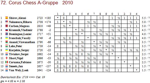 TopTurniere Corus Chess 2010 - Carlsen und Nakamura siegen Shirov mit erster Niederlage