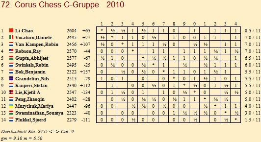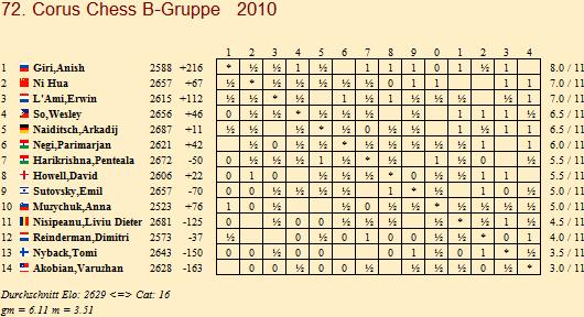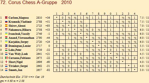 TopTurniere Corus Chess 2010 - Carlsen und Kramnik gleichauf Anish Giri mit Glück in B-Gruppe / Li Chao kurz vor Triumph in C-Gruppe
