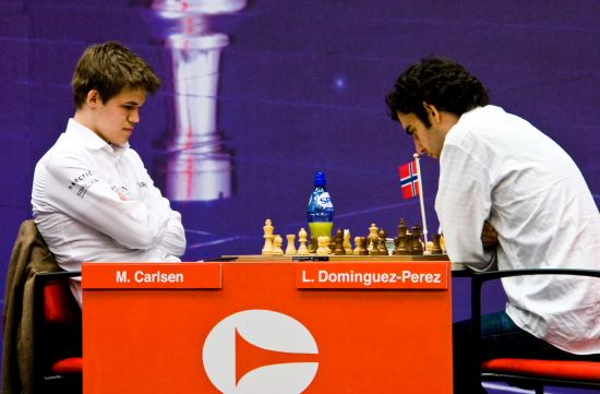 29.01.2010 - Mit einer weiteren Demonstration der Stärke hat sich Magnus Carlsen beim Corus Chess 2010 in Wijk aan Zee zu Vladimir Kramnik an die Spitze begeben. Der Norweger besiegte Leinier Dominguez, wie es schien mit leichter Hand, während Kramnik gegen Alexei Shirov lange um das Remis kämpfen musste. Neben Carlsen konnte nur Loek van Wely siegen. Im niederländischen Duell nutzte er gegen Sergey Tiviakov eine schweren Endspielfehler und konnte sich so etwas vom Tabellenende absetzen. Dass man abseits aller Theorie und schachlichen Fähigkeiten auch mal etwas Glück auf dem Weg zum Erfolg braucht, bewies in der B-Gruppe Anish Giri. Wesley So hatte seinen jungen Kollegen bereits gehörig im Schwitzkasten, der Sieg war zum Greifen nahe, doch dann übersah der Filipino eine Mattwendung und musste aufgeben. Und es sollte noch besser kommen für Giri, denn alle weiteren Begegnungen seiner Gruppe endeten im Remishafen, sodass der Youngster nun wieder einen vollen Zähler Vorsprung vor den Verfolgern hat. Arkadij Naiditsch hat nunmehr 1,5 Punkte Rückstand und benötigt beinahe noch mehr Glück, als es Giri heute hatte, um noch ganz vorn zu landen. In der C-Gruppe scheinen indes die Würfel um den Turniersieg bereits gefallen zu sein. Mit seinem heutigen Sieg gegen Mariya Muzychuk verteidigte der Chinese Li Chao seinen komfortablen 1,5-Punkte-Vorsprung auf die Konkurrenz und darf sich fast schon sicher auf die Einladung für das B-Turnier 2011 freuen. Besonders bemerkenswert ist übrigens die Tatsache, dass dies in der C-Gruppe nun schon die zweite Runde in Serie war, in welcher keine Partie remis endete! Im Vergleich wurden in der A- und B-Gruppe heute ganze drei Partien entschieden.