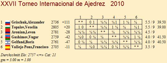 TopTurniere Linares 2010 - Bravo, Sasha! Grischuk schlägt Topalov und sorgt für Herzschlagfinale