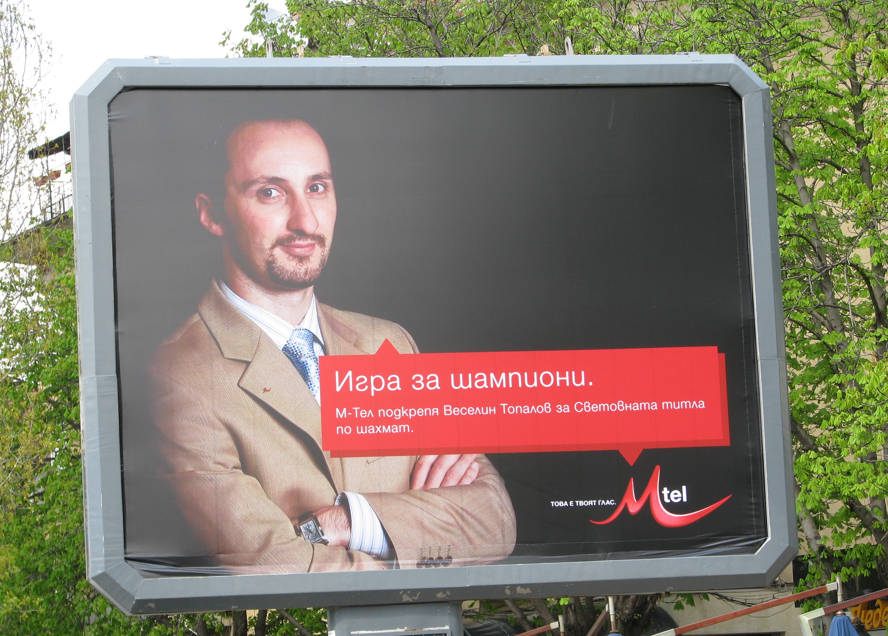 Der bulgarische Schachheld macht Werbung für die Telekommunikationsfirma M-Tel