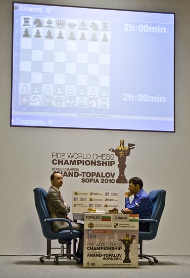 08.05.2010 - "Mein Geld wäre auf Anand", gab der Vorgänger Vishys, Vladimir Kramnik, auf die Frage der Zeit-Redaktion "Und wer, meinen Sie, gewinnt das Match?" zu Protokoll. Die Atmosphäre im Sofioter Military Club war selten so relaxt während einer Partie, wie während der 10.Partie. Nur ganz wenige Karten waren verkauft worden, obwohl der Spielstand 4½:4½ und die Weißpartie von Topalov alle Voraussetzung für einen weiteren Thriller für den echten bulgarischen Fan erfüllten. Die solide Spielweise beider Protagonisten war vor allem auf Topalovs Seite vielleicht ein Fingerzeig, dass auch bei ihm nach dem "Aufreger der 9.Partie" die Kraftströme nicht unbegrenzt fließen können. Deutlicher Hinweis war nach dem überraschenden Bombenzug La6!, dass er nach dem Abtausch der Damen mit einem scheinbar besseren Endspiel Läuferpaar gegen Läufer und Springer übrigblieb und keinerlei Vorteile mehr erzielen konnte, sondern eher noch präzise ums Remis am Schluss bangen musste, meinten fast alle Experten. Vielleicht schwirrten aber schon seine Gedanken um die 11.Partie herum, wo Anands Weißaufschlag ihn in ähnliche Schwierigkeiten, wie bei der 9.Partie bringen könnte. Spätestens während der Pressekonferenz wirkte seine temporäre gedankliche Abstinenz und echte Wortkargheit auf diesen Umstand hin. Klar ist jetzt: wer zuerst "blinzelt" verliert das Duell, genau wie im Western "High noon"! Lesen Sie auch das interessante Skype Interview in der Online-Redaktion der "Zeit".