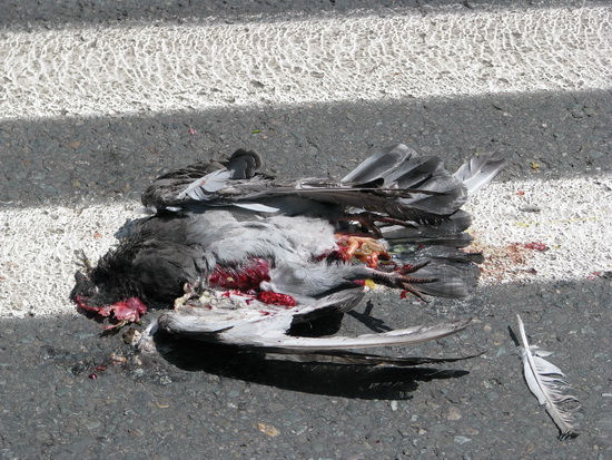 Makabrer Anblick: unmittelbar vor Spielbeginn musste diese Taube vorm Military Club vor den Augen des Schreibers ihr Leben lassen - nicht ganz einfach zu verdauen, wenn man ein bisschen der symbolische Abergläubigkeit anhängt!
