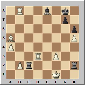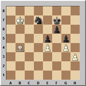 Einzig 50...Sf8! konnte das Remis festhalten, aber Schwarz war (ohne Computer) nicht der Einzige, der glaubte, dass dies verlieren muss. Dem ist aber nicht so! Nach 51.Lxf8 Kxf8 52.Kc6 Ke7 53.Kc7 scheint Schwarz erledigt, aber die Flucht nach vorn wird ihn retten!
