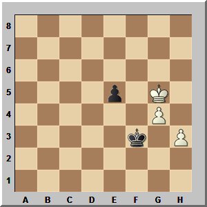 Schauen wir uns noch rasch das Wettrennen an: 59.h4 e4 60.h5 e3 61.h6 e2 62.h7 e1D 63.h8D Dd2+ = und Schwarz wird zwangsläufig den g-Bauer und damit das Remis erobern.