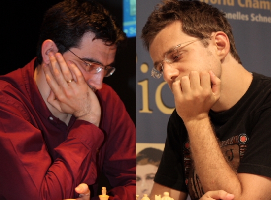 Das Duell Kramnik contra Aronian schwelt seit einiger Zeit in der Weltspitze. Man ringt um den vierten Platz in der Weltrangliste hinter Viswanathan Anand, Veselin Topalov und Magnus Carlsen. Aktuell ist Aronian mit drei Elopunkten vorne, doch das könnte sich mit dem laufenden Shanghai Masters wieder ändern. In der ersten Partie war Aronian seinem Kontrahenten noch so gerade von der Schippe gehüpft, aber in der heutigen Partie konnte Kramnik seinen Vorteil sehenswert verwerten. Sein armenischer Gegner opferte früh und auch korrekt eine Qualität, aber der Russe fand bis ins Endspiel Turm plus Bauer gegen Läufer plus Bauer immer wieder den besten Zug. Dort machte sich Aronian berechtigte Hoffnungen auf das Remis, aber tatsächlich war die Stellung laut der Nalimov Endgame Tablebases verloren. Die spannende Frage lautete: Wusste das auch die russische numero uno? Ganz offensichtlich war dem so, wobei der begründete Verdacht besteht, dass der 54. Zug von Kramnik nicht korrekt erfasst wurde. Statt 54...Th4?, was den a-Bauer einstehen lässt, ist 54...Th3+ wahrscheinlicher. Doch urteilen Sie selbst: