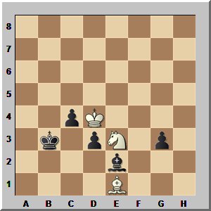 Positionell ist die Messe hier gelesen, denn Weiß musste ja gewinnen, um das Finale in Bilbao zu erreichen. Hier hat er so gerade die schwarzen Freibauern im Griff, aber mehr ist nicht drin. Jetzt kam es auf reine Geschwindigkeit an. Wer würde die Zeit zuerst überschreiten? Immerhin hatte Weiß zu Beginn mal eine Minute mehr auf der Uhr, aber dieses Polster war längst verbraucht. 79.Sg2?? Das verliert. 79...Kc2?? So allerdings nicht!