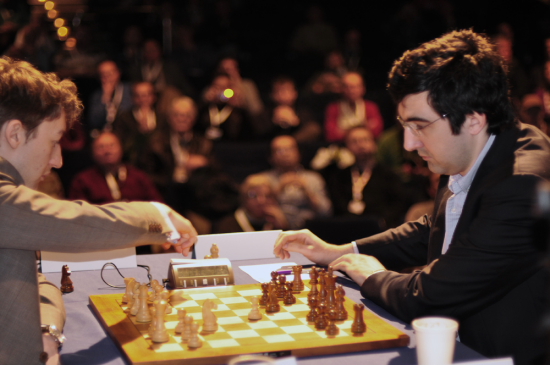 10.12.2010 - Die dritte Runde der 2. London Chess Classic bot erneut extrem spannungsgeladene Partien, obwohl letztlich nur eine einen Sieger fand. Viswanathan Anand opferte gegen Magnus Carlsen früh einen Bauern, aber es schien, als hätte der Norweger danach gute Chancen, Vorteil zu erlangen. Doch er fand in komplizierter Lage nicht die beste Verteidigung gegen die indische Initiative und geriet alsbald auf die Verliererstraße. Doch wie es das Schicksal wollte, der Weltmeister verpasste ein ums andere Mal den klaren Gewinnweg und musste seinen Gegner in einer vorteilhaften Stellung ziemlich lange kneten, bis sich dieser endlich streckte. Zuvor hatten sich Michael Adams und Nigel Short in einer alten Caro Kann-Variante nach einigen Komplikationen friedlich getrennt, und auch Hikaru Nakamura konnte seine offensichtlich vorteilhafte Stellung gegen David Howell nicht gewinnen. Die längste Partie der dritten Runde zelebrierten Luke McShane und Vladimir Kramnik. Zu guter Letzt quälte die russische Nummer 1 seinen britischen Gegenüber im Seeschlangen-Endspiel Turm und Läufer gegen Turm bis zum 139 Zug, bevor er dem Remis zustimmte. Somit führt weiterhin McShane vor den jetzt punktgleichen Nakamura und Anand, wobei der Amerikaner aufgrund seines Schwarzsieges aus der zweiten Runde gegen Kramnik weiterhin Zweiter ist.