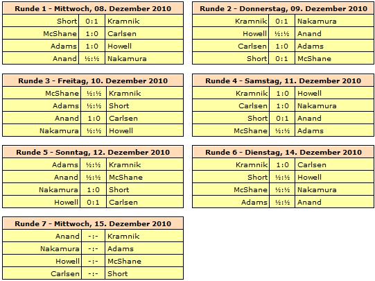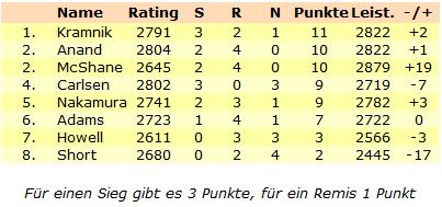 TopTurniere London Chess Classic - Carlsen im Glück Kramnik verpasst Sprung an die Tabellenspitze Fünf Spieler können das Turnier noch gewinnen!