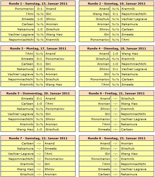 TopTurniere Tata Steel 2011 - Anand siegt erneut und führt alleine Efimenko holt auf McShane in B-Gruppe auf Vocaturo verteidigt Führung in C-Gruppe