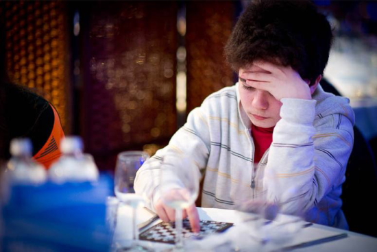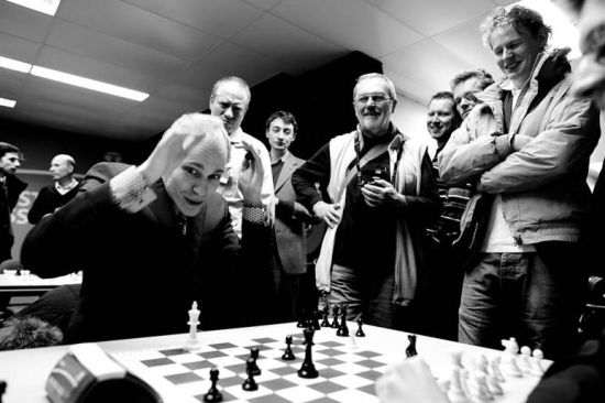 Während die Anderen feiern, greift GM Illya Nyzhnyk zum Magnetschach