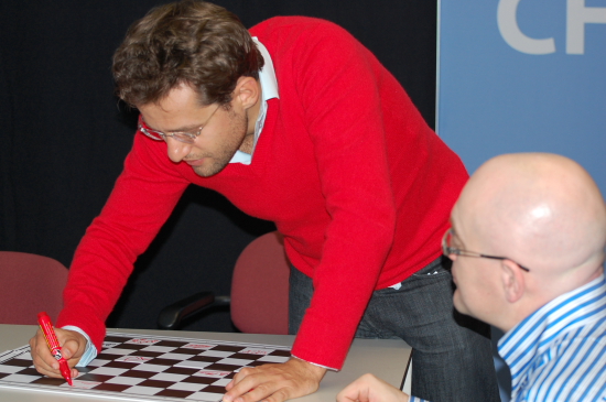 27.01.2011 - Viele werden sich erinnern, im Mai des vergangenen Jahres hatte Eric van Reem entscheidenden Anteil daran, dass Weltmeister Viswanathan Anand überhaupt zu seinem WM-Match gegen Veselin Topalov in Bulgarien antreten konnte. Dank seiner guten Kontakte in die niederländische Heimat organisierte van Reem dort das passende Transportmittel nebst Fahrern und brachte den Champion und einen Teil dessen Teams heil nach Sofia. In diesen Tagen spielt Anand beim Tata Steel Chess Tournament im niederländischen Wijk aan Zee - völlig klar, dass van Reem zusammen mit seiner Kameraausrüstung dort persönlich vorbei schaut. Am gestrigen Nachmittag traf er dort ein, als die 10. Runde bereits lief, dennoch hat er uns umgehend die ersten selbst geschossenen Bilder gesendet, und es werden in Bälde weitere folgen. Erfahren Sie auch, was es mit dem "Boete-Pot" auf sich hat!