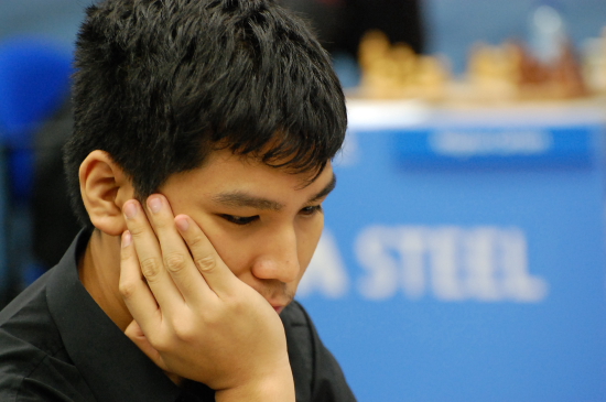 28.01.2011 - Von einem Sieg bei einem absoluten Top Turnier träumt Hikaru Nakamura garantiert schon lange, und so nah dran wie heuer in der A-Gruppe des Tata Steel Chess Tournaments war er diesem Ziel noch nie. Nach 11 von 13 Runden hat der Amerikaner wieder die alleinige Führung inne und damit die besten Chancen, am Sonntag zum König von Wijk gekrönt zu werden. Zu verdanken hat er das seinem heutigen Sieg gegen Ian Nepomniachtchi, während Viswanathan Anand gegen Maxime Vachier-Lagrave lediglich einen halben Punkt ergatterte. Gewinnen wird Magnus Carlsen das Turnier zwar (wahrscheinlich) nicht mehr, aber über seinen heutigen Schwarzsieg gegen Vladimir Kramnik wird er sich dennoch mächtig gefreut haben. Mit einer sehr starken Endspielleistung schickte er den 14. Weltmeister gekonnt auf die Bretter. Eine waschechte Seeschlange produzierten Wang Hao und Jan Smeets in der längsten Partie des Tages. Im Damenendspiel mit Mehrbauer quälte der Chinese seinen Gegner bis zum 108. Zug, bevor er ihn mit einem Remis in den Feierabend entließ.