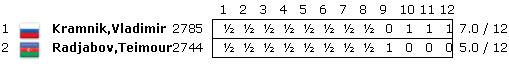 09.05.2011 - Der Erste, der sich über den Einzug ins Halbfinale der Kandidatenmatches freuen durfte, war Boris Gelfand. Shakhriyar Mamedyarov musste unbedingt mit Schwarz gegen den Israeli gewinnen, doch nach nur 24 Zügen stellte dieser seine Bemühungen ein und bot angesichts einer klar schlechteren Stellung die Punktteilung an. Danach durfte Gata Kamsky jubeln, denn ihm gelang es gegen Veselin Topalov, eine zwischenzeitlich verlorene Stellung noch zu einem Remis umzubiegen und so ebenfalls in die nächste Runde einzuziehen. Somit wird es im Halbfinale zum Aufeinandertreffen zwischen Kamsky und Gelfand kommen. Die Frage, wie sich das zweite Halbfinale gestalten würde, musste im Tie-Break fallen. Weder Levon Aronian und Alexander Grischuk noch Vladimir Kramnik und Teimour Radjabov konnten gegeneinander in der regulären Spielzeit eine Entscheidung herbeiführen. Auch die vier Schnellschachpartien zwischen Kramnik und Radjabov endeten allesamt friedlich, so dass es zum Blitzentscheid kam. In selbigen sollte keine Partie unentschieden enden. Erst übernahm Radjabov die Führung, doch Kramnik konnte ausgleichen. In der zweiten Blitzrunde dann hatte der Russe die besseren Nerven und siegte mit 2:0. Ausgeschieden ist dagegen der Top-Favorit in allen Umfragen, Aronian. Nachdem der Armenier in der dritten Schnellpartie eine sehr vorteilhafte Stellung zum Remis verdorben hatte, konnte Grischuk die vierte für sich entscheiden. Somit kommt es im zweiten Halbfinale zum inner-russischen Duell zwischen Kramnik und Grischuk. Nun dürfen sich die Spieler zwei Tage von den zurückliegenden Strapazen erholen, wobei die Zeit wohl eher zur Vorbereitung genutzt werden wird. Am kommenden Donnerstag starten die Halbfinals, welche GM Klaus Bischoff wieder live für Sie kommentieren wird.