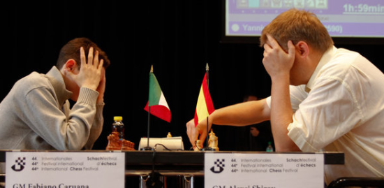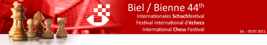 20.07.2011 - Im Spitzenduell der dritten Runde des ACCENTUS-Grandmaster Tournament in Biel traf der führende Magnus Carlsen mit Schwarz auf Verfolger Alexander Morozevich und das erhofft spannende Duell. In einer Stellung mit heterogenen Rochaden sah es lange so aus, als wäre der Norweger früher am Drücker, aber in komplizierter Stellung konnte er den Sack nicht zumachen und musste miterleben, wie sich Moro findig befreite und verdient im Remishafen anlegte. Zuvor hatten sich schon Yannick Pelletier und Maxime Vachier-Lagrave friedlich getrennt, wobei dem Friedensschluss ein heftiges Handgemenge vorangegangen war. Mit einem riskanten Qualitätsopfer brachte sich der Franzose in eine bedenkliche Lage, welche er aber letztlich mit einer schönen Dauerschachkombination entschärfte. Somit lagen alle Hoffnungen auf etwas Blut in der Begegnung zwischen Alexei Shirov und Fabiano Caruana. Der Italiener opferte für einen starken Freibauer seinen g-Bauer, fand danach allerdings nicht den rechten Weg und verlor auch noch sein Prachtstück. Mit nunmehr zwei Mehrbauern ließ Shirov nichts mehr anbrennen und gewann souverän. Am Donnerstag haben die Spieler ihren ersten Ruhetag.