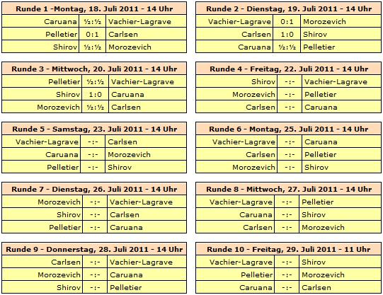 TopTurniere Biel 2011 - Shirov macht Boden gut Morozevich hält Carlsen stand, Pelletier verpasst Überraschung gegen Lagrave